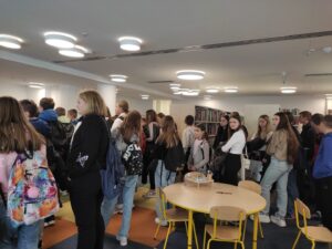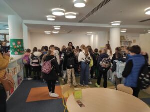 22.10.učenici viših razreda posjetili su Narodnu knjižnicu Vlado Gotovac u Sisku, dok su niži razredi svoj posjet realizirali 24.10. Nakon razgleda same knjižnice viši razredi su imali malu radionicu uspješnog učenja,dok su niži razredi slušali priču “Oprostite,jeste li Vi vještica?”,nakon čega su izrađivali straničnike za knjige.Da bi posjet bio kompletan,nismo mogli preskočiti posjet McDonald’su.